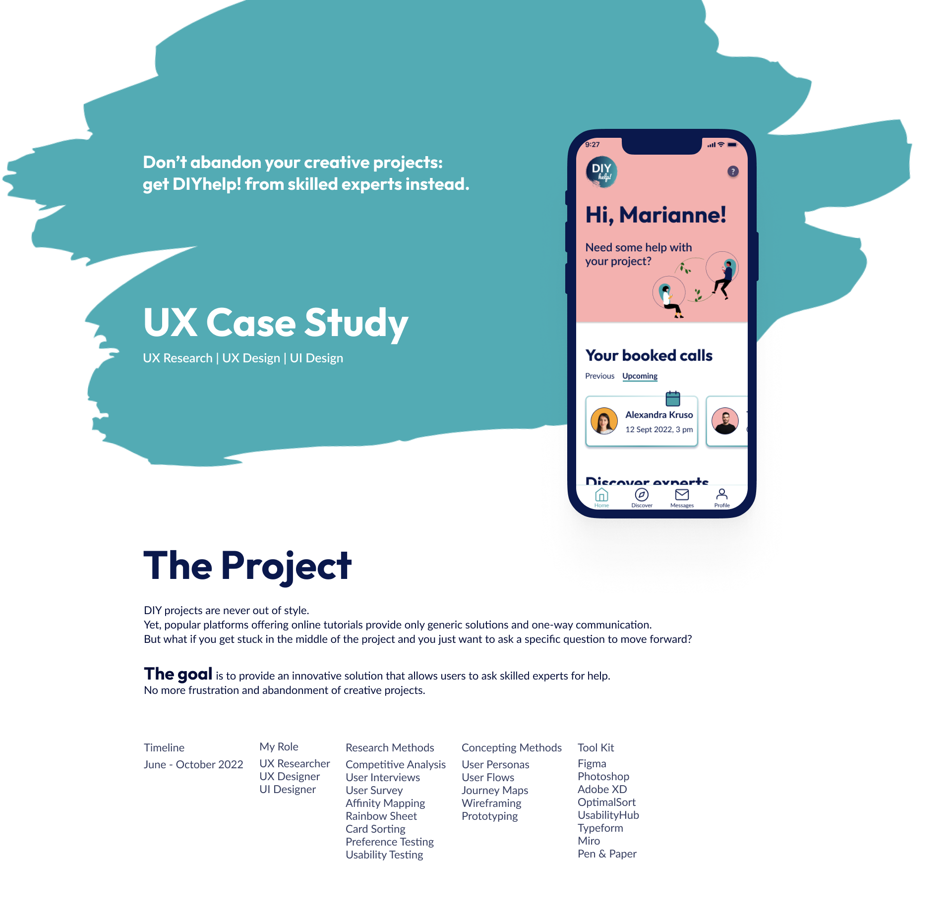A UX case study of an innovative app allowing users to ask skilled DIY experts for help.